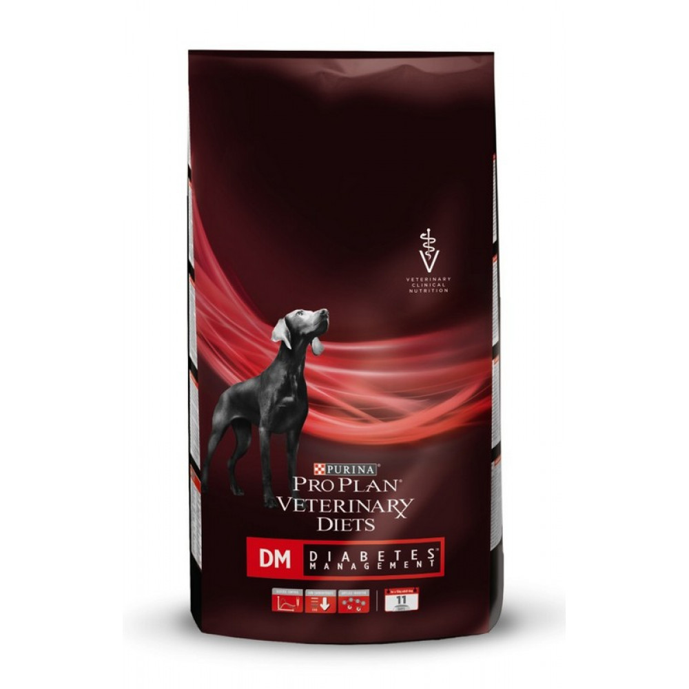 Η DM Diabetes Management για σκύλους είναι μια πλήρης κλινική δίαιτα που βοηθά στη διαχείριση του σακχαρώδους διαβήτη του σκύλου. Έχει ειδικά σχεδιαστεί για την διατροφική διαχείριση των σκύλων με διαβήτη βοηθώντας στην ρύθμιση των επιπέδων της γλυκόζης (σακχάρου) στο αίμα. Η DM Diabetes Management για σκύλους περιέχει ένα εκχύλισμα λευκού φασολιού (πηγή του αναστολέα της αμυλάσης) που αποδεδειγμένα περιορίζει την απορρόφηση των υδατανθράκων στους σκύλους και βοηθά στη μείωση των διακυμάνσεων της γλυκόζης του αίματος μετά το γεύμα. Είναι επίσης χαμηλή σε υδατάνθρακες και περιέχει σύνθετους υδατάνθρακες οι οποίοι βοηθούν στην ρύθμιση των επιπέδων της γλυκόζης στο αίμα. Η DM Diabetes Management για σκύλους περιέχει μια πηγή γλυκοζαμίνης και χονδροϊτίνης που βοηθά στη διατήρηση της κινητικότητας των αρθρώσεων. Συστήνεται η συμβουλή του κτηνιάτρου πριν από τη χρήση και πριν από την παράταση της περιόδου χρήσης.