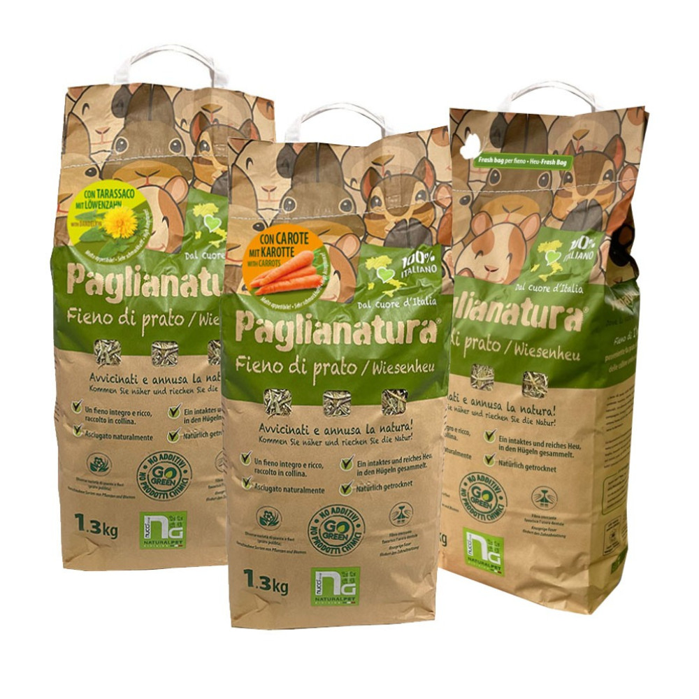 Ο χλοοτάπητας Paglianatura περιέχει ένα μείγμα βοτάνων - Graminaceae (Phleum pratense, Lolium italicum, Poa pratensis, Dactylis glomerata, Bromus inermis, Festuca rubra) και ψυχανθών (Medicago sativa) - με σημαντικά θρεπτικά συστατικά, υψηλή περιεκτικότητα σε φυτικές ίνες, χαμηλή περιεκτικότητα σε πρωτεΐνες. Ασβέστιο, βιταμίνες, μέταλλα και φυσικά ιχνοστοιχεία.