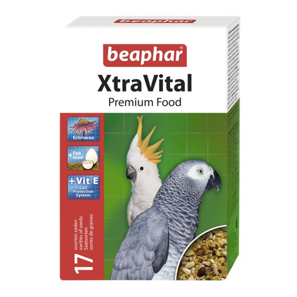 Πλήρης ζωοτροφή για μεγάλους παπαγάλους. Η τροφή XtraVital Parrot είναι μία πλήρης, γευστική και ισορροπημένη premium τροφή η οποία παράχθηκε σε συνεργασία με διατροφολόγους, κτηνιάτρους και ειδικούς στα πτηνά. Συνδυάζει φρούτα, μεγάλη ποικιλία 22 επιλεγμένων σπόρων και την διατροφική αξία του αυγού (27,7% eggfood). H XtraVital περιέχει εκχύλισμα Echinacea το οποίο διατηρεί υγιές το ανοσοποιητικό σύστημα, ενθαρρύνει την ταχεία αποκατάσταση μετά από ασθένεια και ενισχύει το πτέρωμα και γενικά την καλή κατάσταση σε όλα τα πτηνά.